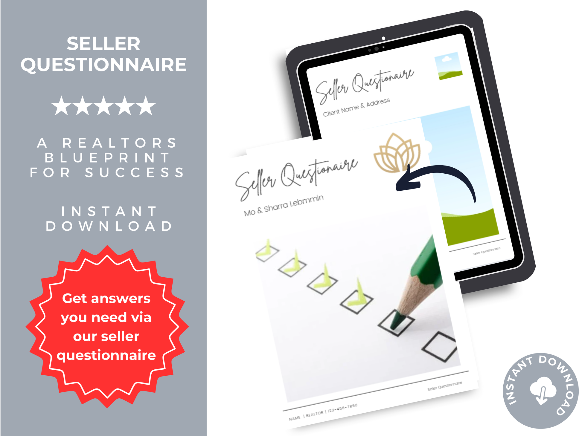 This questionnaire ensures you fully understand your seller client’s needs, wants, and goals in their selling journey — so you can provide the best possible service and tailored listing, open houses, and showings.
